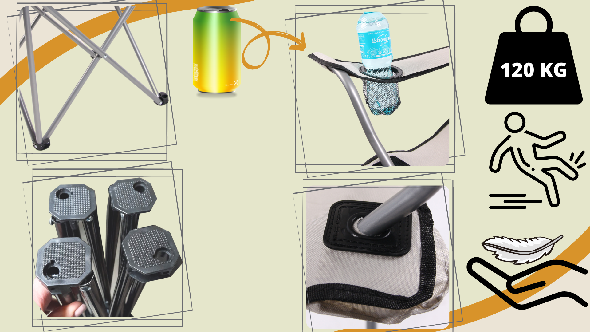 ➡️Zložljiv kamperski stol z držalom za skodelico + prevleka