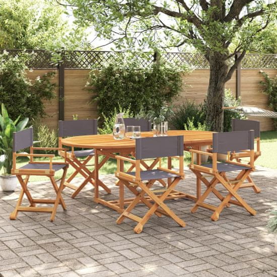 Ti zložljivi vrtni stoli bodo zagotovo kul dodatek za vsak zunanji bivalni prostor. Lahki in hkrati močni stoli se lahko zložijo. ko niso v uporabi. kar omogoča preprosto shranjevanje in prenašanje. Trpežno blago: Blago zagotavlja preprost in čist videz. poleg tega pa je zračno in trpežno.Trden okvir: Trden akacijev les je čudovit naraven material. Akacijev les je tropski trden les. ki je gost. močan in vzdržljiv. Oljni premaz zagotavlja. da je stol primeren za uporabo na prostem.Zložljiva zasnova: Zunanji režiserski stol je mogoče enostavno zložiti. kar je priročno za prenašanje in shranjevanje.Široka uporaba: Trden vrtni stol se lahko uporablja kot počivalnik na vrtu ali balkonu ter kot stol za kampiranje za ribolov. Dobro je vedeti:Če želite. da vaše zunanje pohištvo ostane lepo. vam priporočamo. da ga zaščitite z vodoodporno prevleko.Barva: Temno sivaMaterial: Trden akacijev les z naravnim oljnim premazom. blago (100 % poliester)Dimenzije (vsak): 53 × 47 × 90 cm (Š x G x V)Globina sedeža: 45 cmVišina sedeža: 50 cmPriložena blazina: NePotrebno sestavljanje: DaPaket vsebuje:6 x Stol
