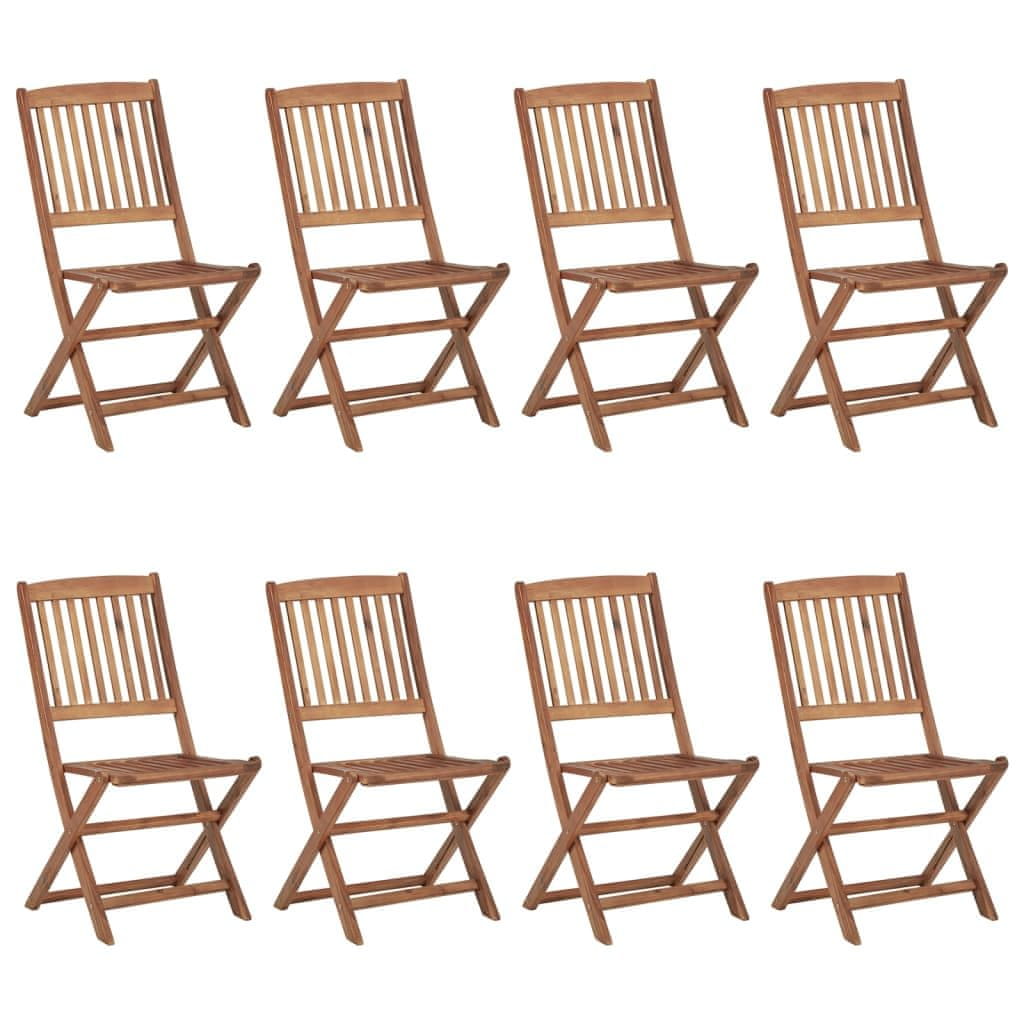 shumee Zložljivi vrtni stoli 8 kosov z blazinami trden akacijev les