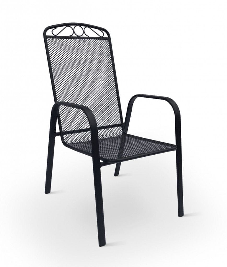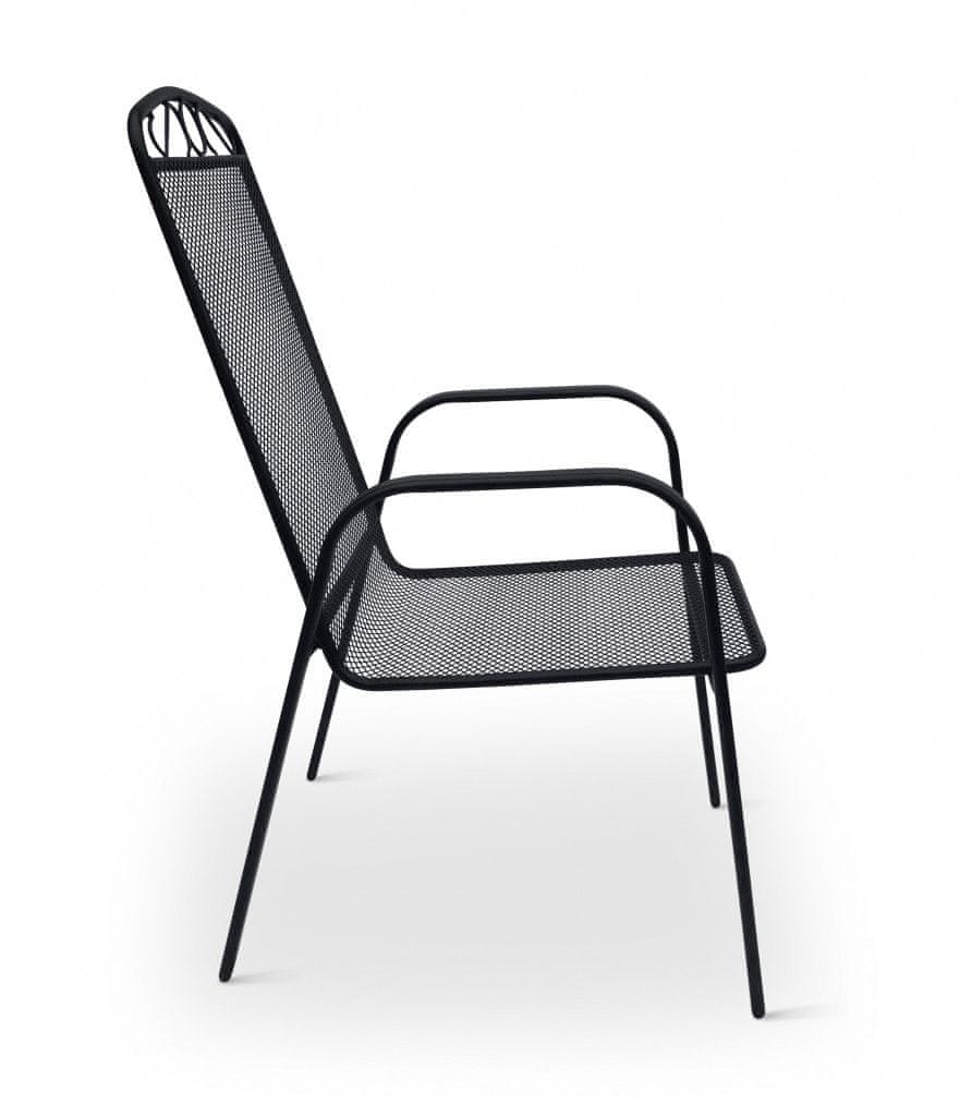 Texim Zložljiv kovinski vrtni stol LANA STEEL s nasloni za roke, črn, 100 kg