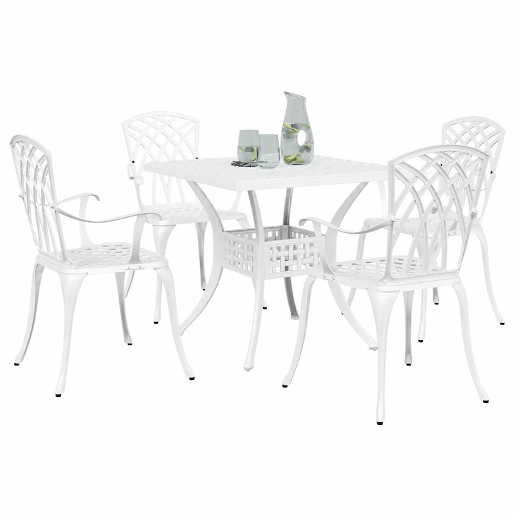 Vidaxl Komplet vrtne mize 5 pcs Bela Lit aluminij