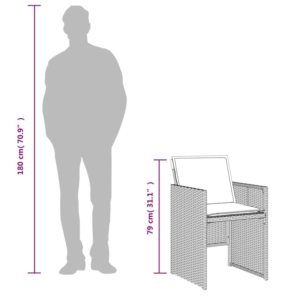 Uživajte v kavi ali prijetnem pogovoru z družino ali prijatelji na svojem vrtu, dvorišču ali balkonu s tem udobnim bistro kompletom! Trpežen material: PE ratan, znan tudi kot poliratan, je trpežen plastični material, ki ne zahteva veliko vzdrževanja in je podoben naravnemu rattanu. Je lahek, enostaven za čiščenje in se zaradi svoje vzdržljivosti in odpornosti na vremenske vplive pogosto uporablja v izdelkih za na prostem. Kompaktno shranjevanje: Ti stoli imajo naslonjalo v obliki zavihka, ki se zloži za prihranek prostora pri shranjevanju. Udobno sedenje: Ti vrtni stoli z debelo oblazinjenimi blazinami ponujajo udobno sedenje. Snemljive in pralne blazine: Sedežne blazine imajo snemljive prevleke, ki omogočajo enostavno pranje in vzdrževanje. Prevleke imajo na hrbtni strani jeziček za enostavno pritrditev blazin na stole. Steklena plošča mize: Mizna plošča je izdelana iz močnega in trpežnega kaljenega stekla, zato jo je enostavno očistiti z vlažno krpo. Ta miza bo vašemu zunanjemu prostoru dodala pridih elegance. Koristno vedeti: Da bi vaše vrtno pohištvo ostalo v dobrem stanju, priporočamo, da ga prekrijete z vodoodporno prevleko. Največja nosilnost: 110 kg na sedež.