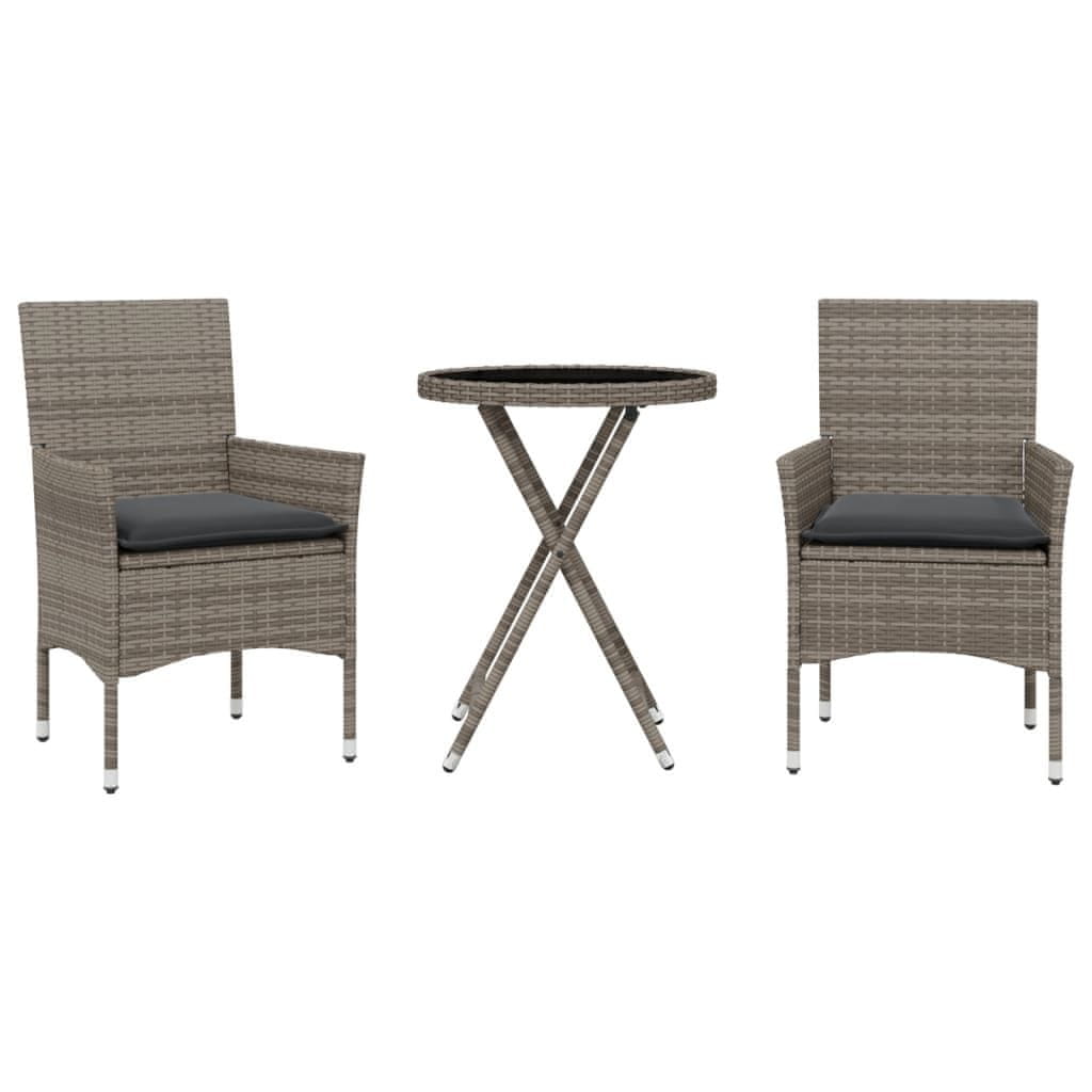 Vidaxl vidaXL 3-delni bistro komplet z blazinami, siv, poli ratan in steklo