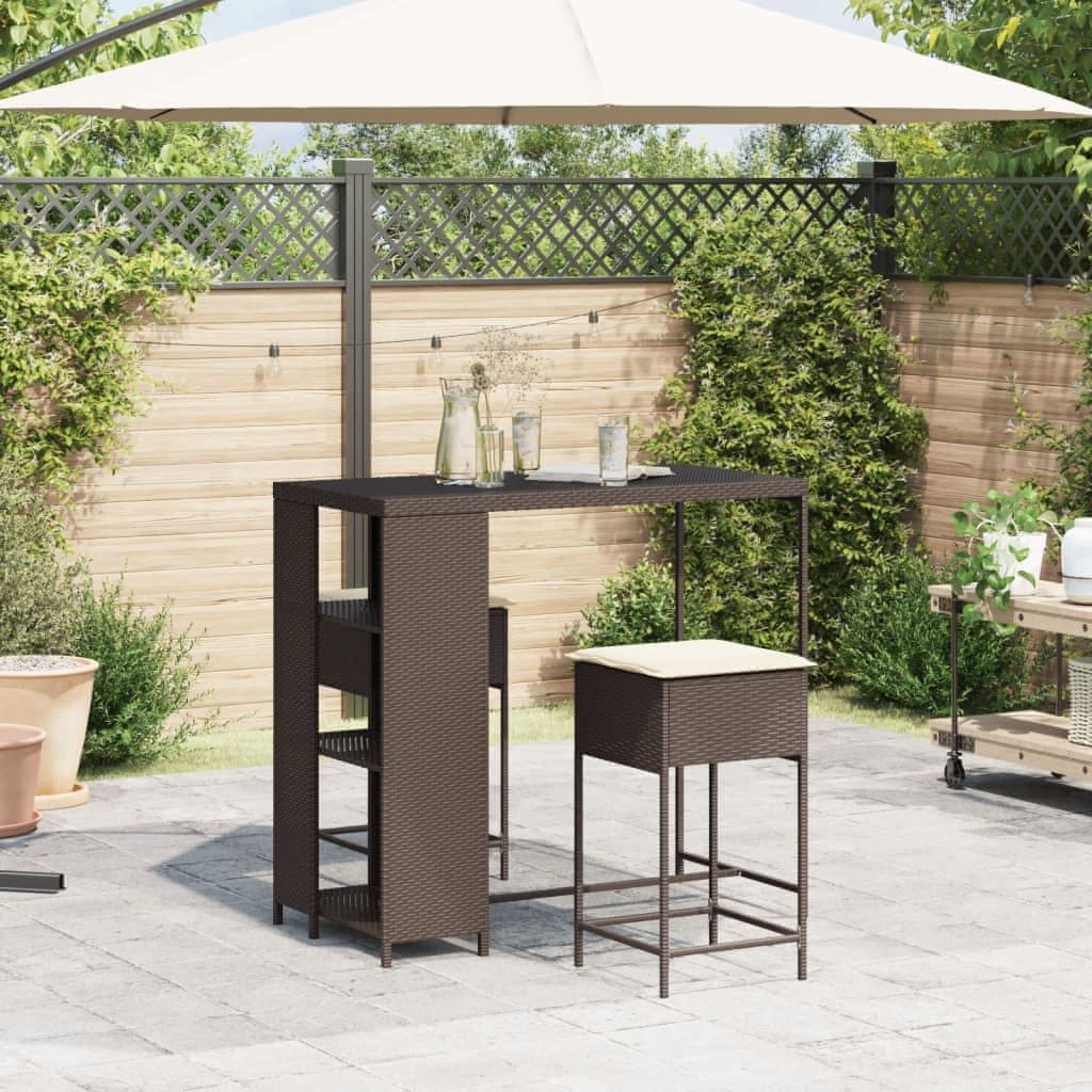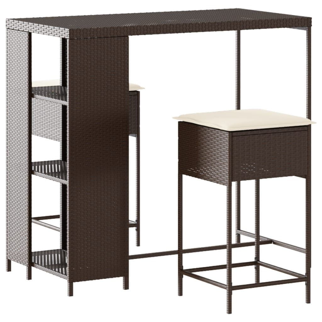 Vidaxl vidaXL 3-delni vrtni barski komplet z blazinami, rjav, PE ratan