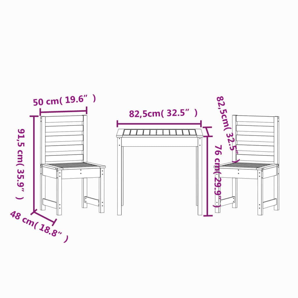 Vidaxl vidaXL 3-delni vrtni bistro set, masiven borov les