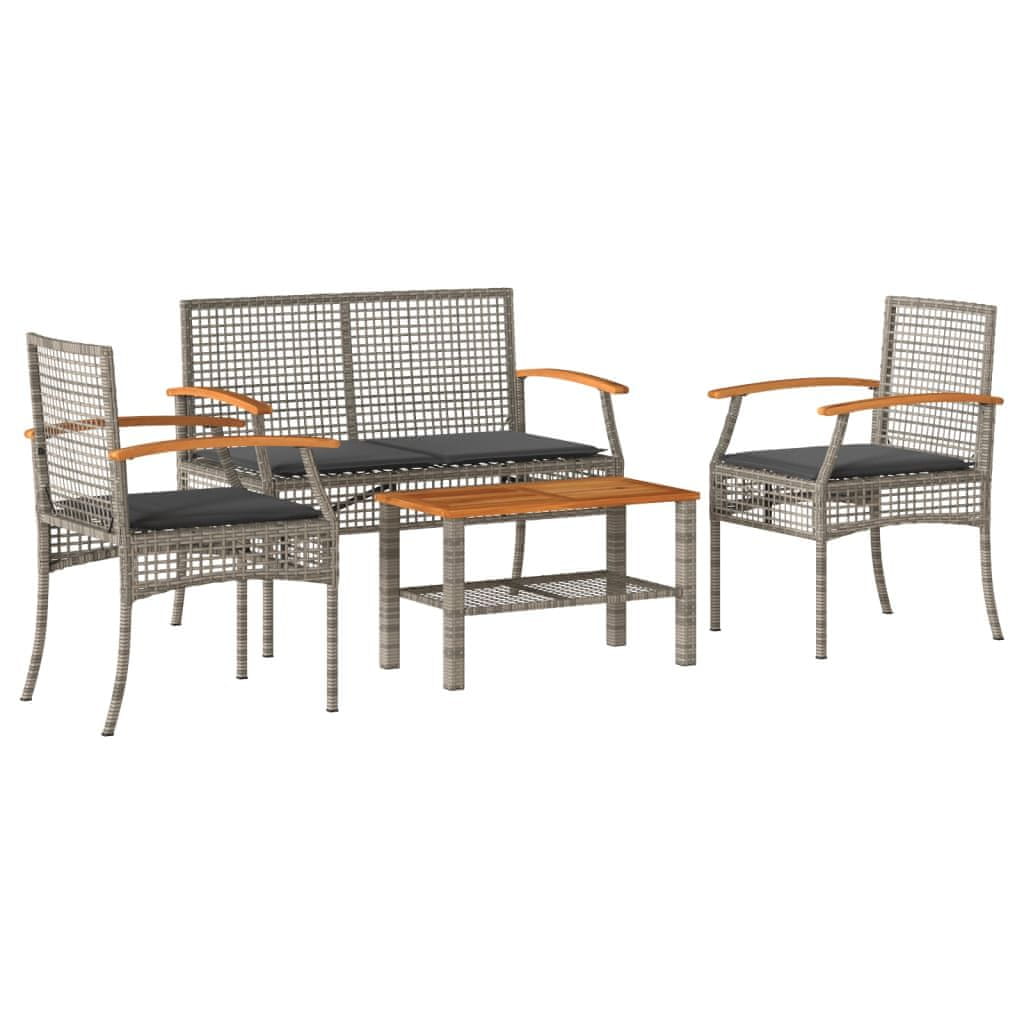 Vidaxl vidaXL 4-delna vrtna sedežna garnitura z blazinami, siva, PE ratan