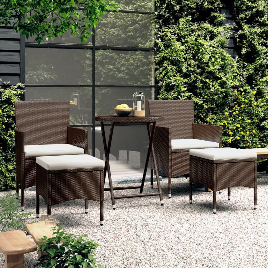 vidaXL 5-delni bistro komplet, PE ratan in kaljeno steklo, rjave barve Celoten opis