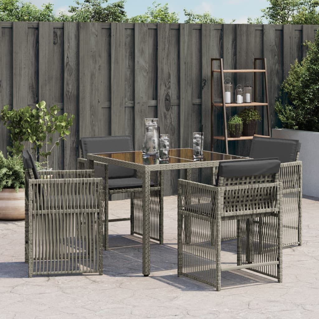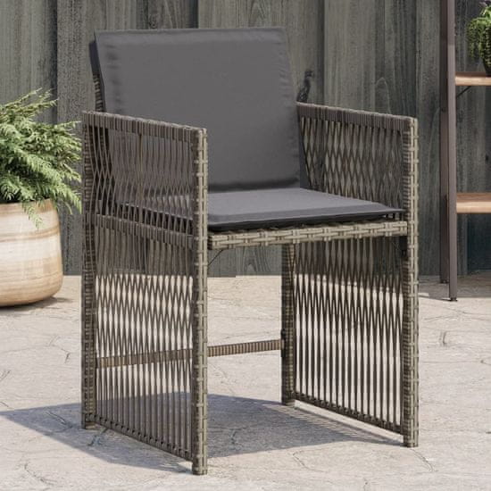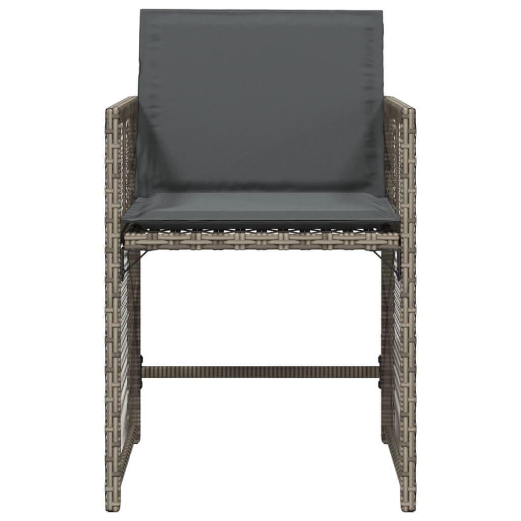 Vidaxl vidaXL Vrtni stoli z blazinami, komplet 4 kosov, sivi, poli ratan