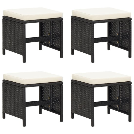 Vidaxl vidaXL Vrtni stoli z blazinami, komplet 4 kosov, poli ratan, črni
