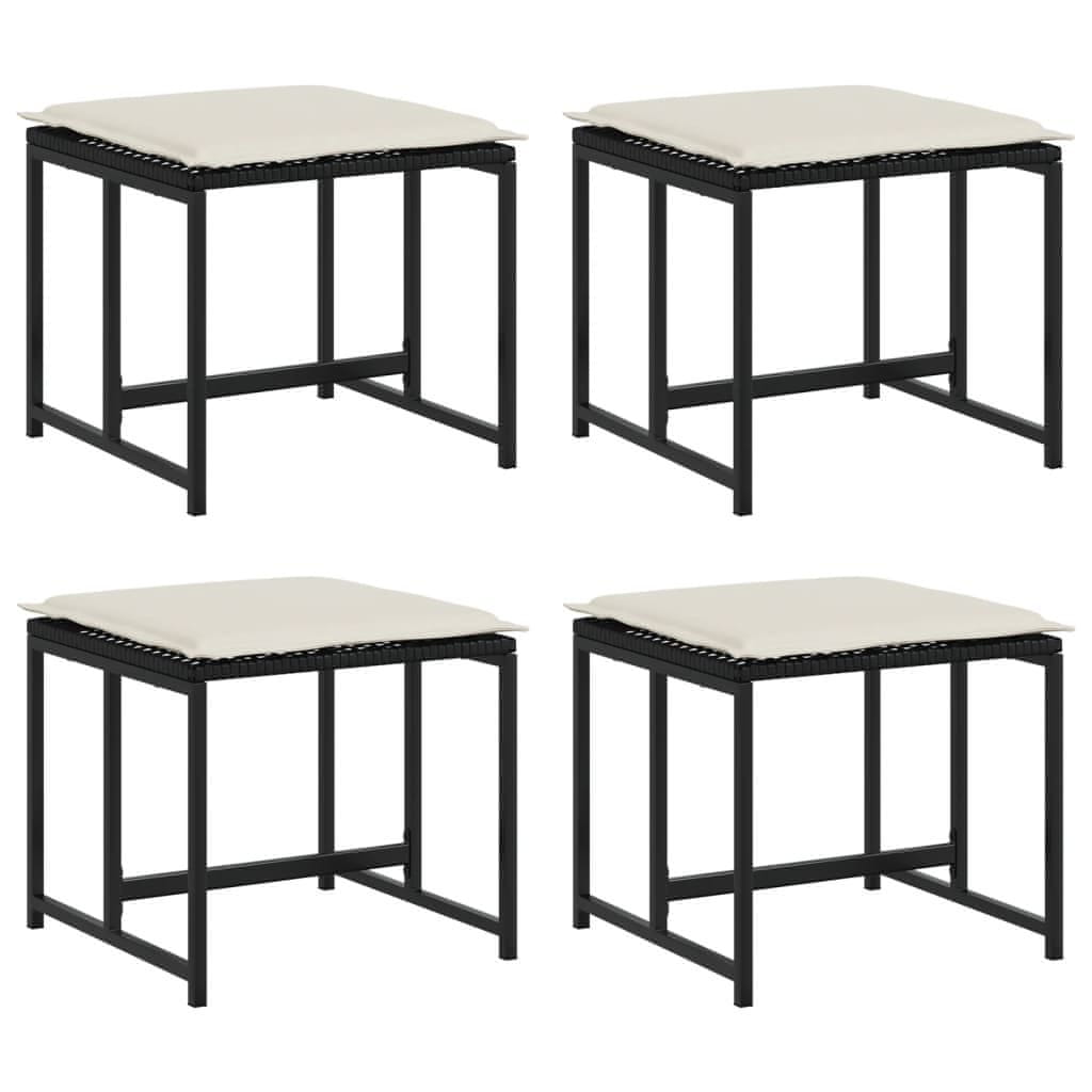 Vidaxl Vrtni stolčki z blazinami 4 kosi črn poli ratan