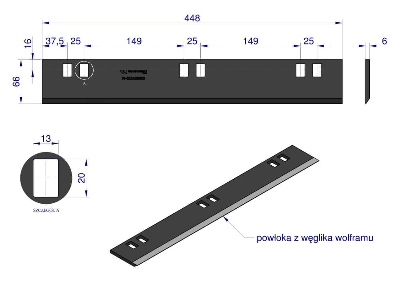 Varjeni valjčni nož ripper 448×66×6 lukenj 6×20mm aplikacija New Holland Laverda WARYŃSKI Celoten opis