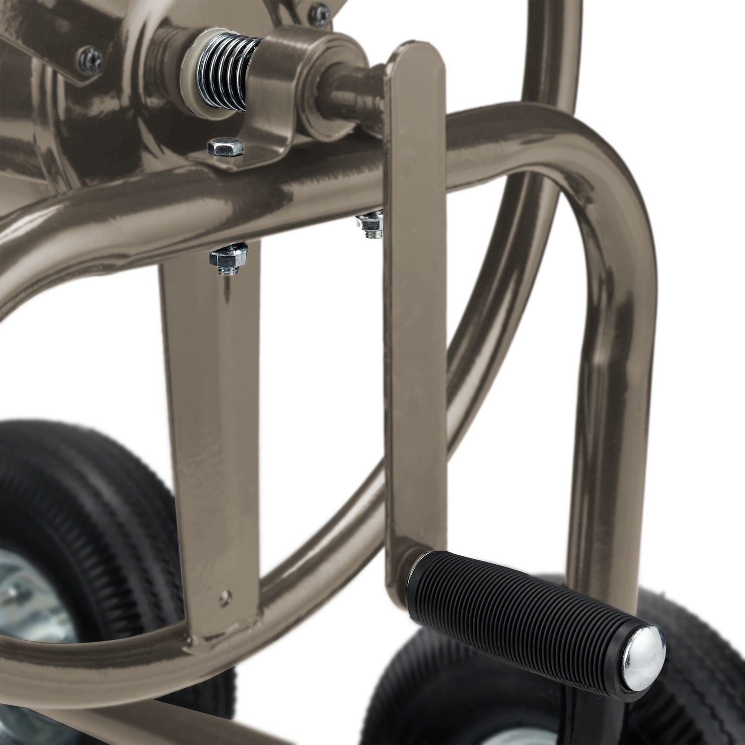 Izboljšajte učinkovitost svojega vrtnarjenja s tem vozičkom za cev za vodo, popolnim za velike vrtove. Brez težav upravljajte svojo cev s priloženimi priključki za pipe in ročico za shranjevanje brez zapletanja.