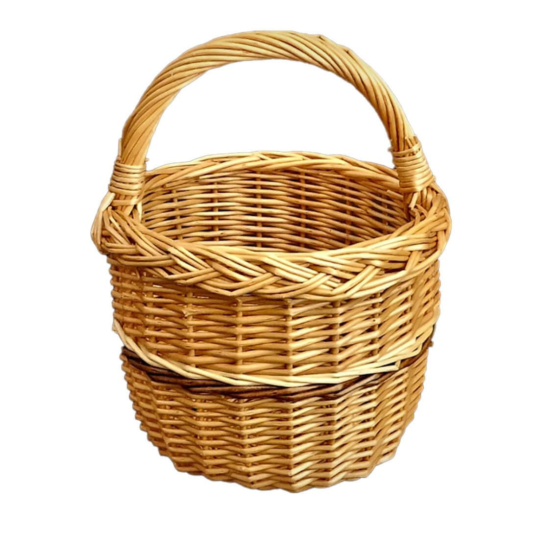 Okrogla pletena košara se lahko uporablja ne le za nabiranje gob, temveč tudi za prenašanje ali shranjevanje sadja ali zelenjave.
