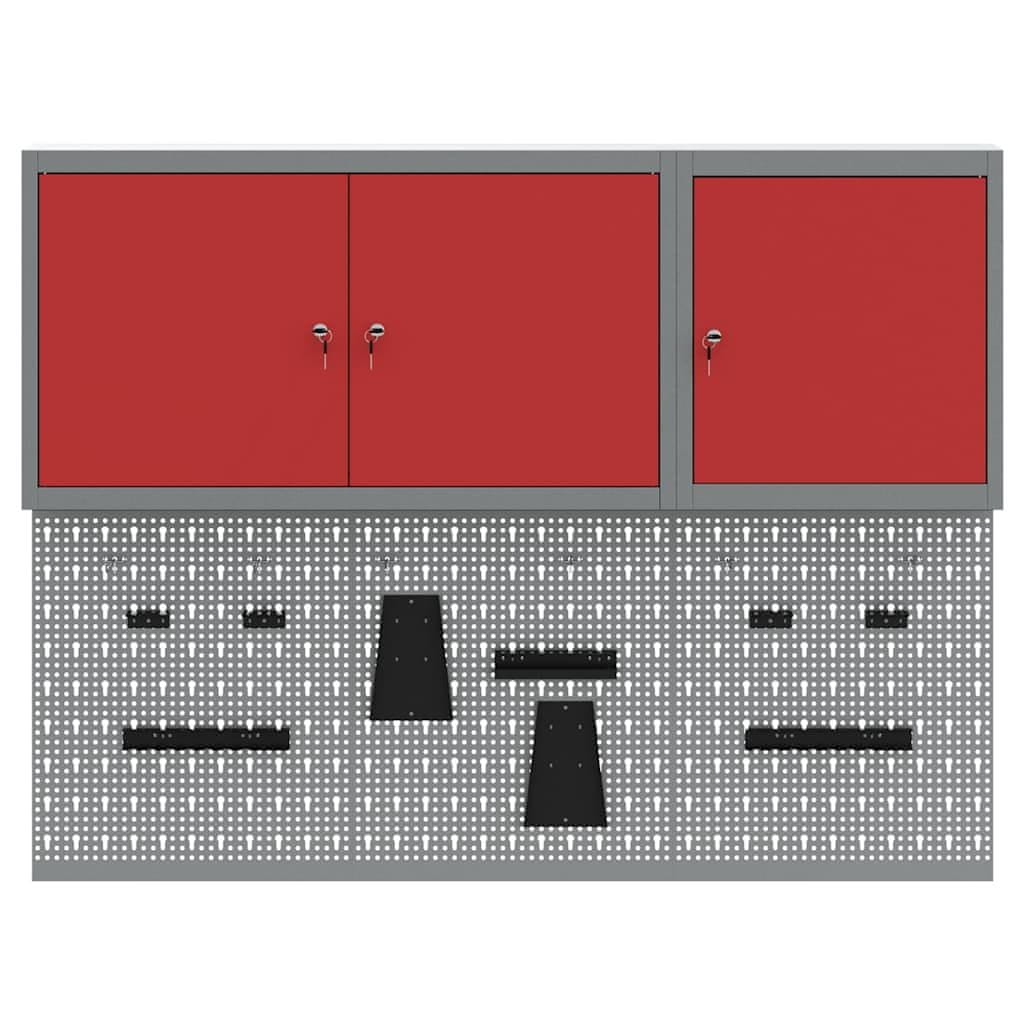• Obsežne komponente: Ta set vključuje kovinske police iz prašno lakiranega jekla, ki ponujajo robustno shranjevanje, ki prenese težke obremenitve in redno uporabo. Kovinski pegboardi omogočajo enostavno prilagajanje organizacije orodij ter optimizirajo prostor za različne vrste orodij.