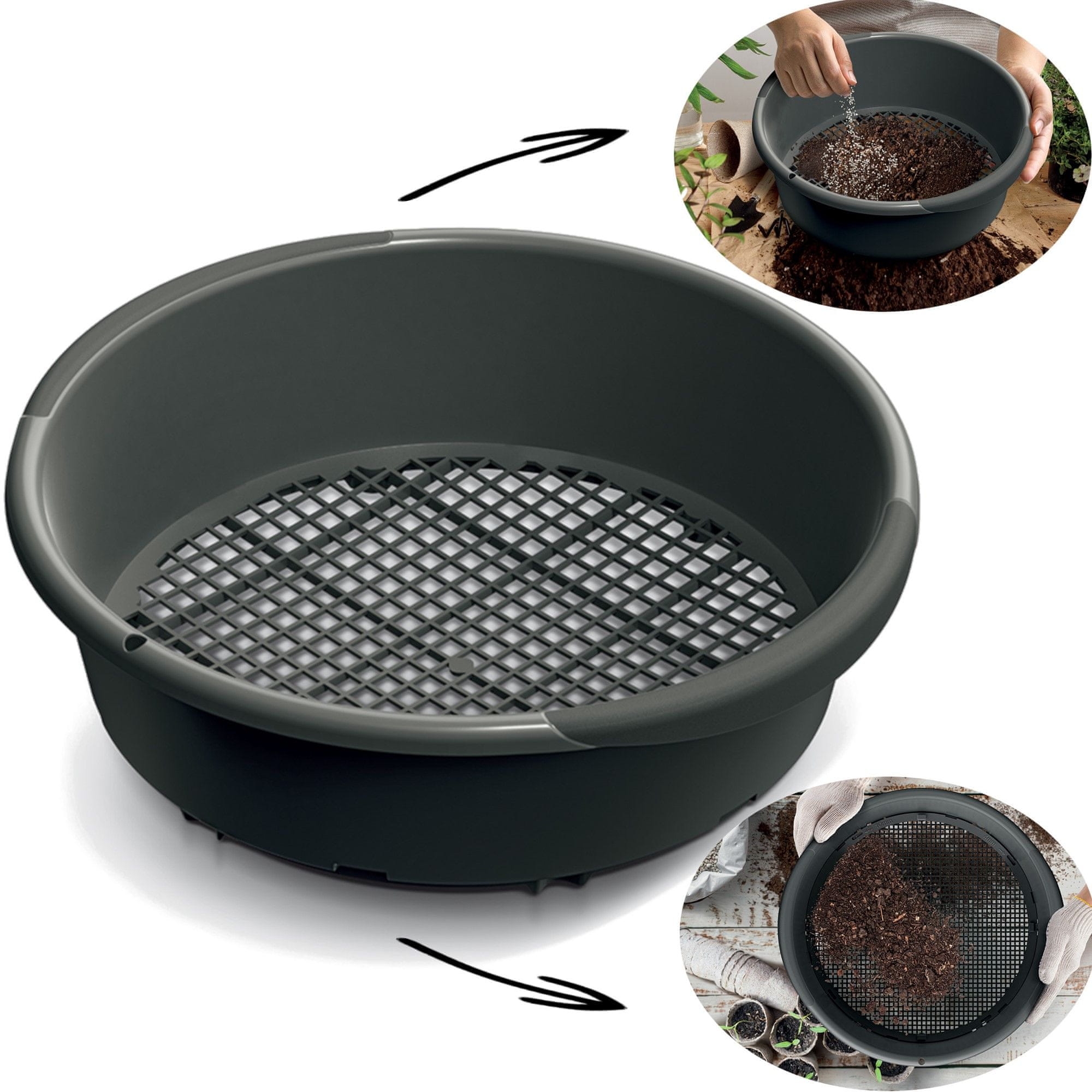 Okroglo sito za zemljo je popolno za domači vrt. Izdelan je iz trpežne plastike in bo služil več let.