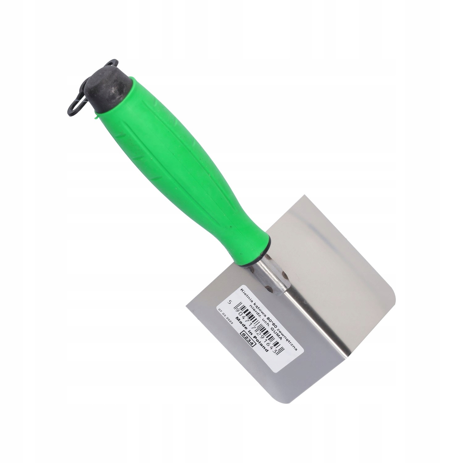 Klasična NOTRANJA KOTNA GLADILKA iz nerjavečega jekla, odporna na neugodne okoljske dejavnike. Debelina pločevine je optimalno izbrana, da se zagotovi toga, stabilna, vendar ne pretežka delovna površina. Spoj je ojačan s točkovnim varjenjem, kar zagotavlja večjo vzdržljivost orodja.