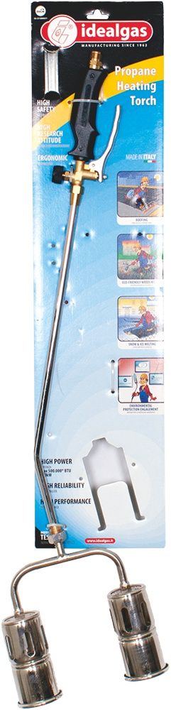 Profesionalni gorilniki Idealgas so zasnovani in v celoti izdelani v Italiji. Za trpežne materiale, iz katerih so izdelani, je značilna visoka odpornost na mehanske poškodbe in visoke temperature. Vsi gorilniki imajo certifikat DVGW in izpolnjujejo najvišje varnostne standarde Tehnični podatki: Moč: 150 kW Poraba plina: 7000 g/h Premer šobe: 2× 60 mm Dolžina: 1000 mm Cev: 5 m 21 8 – za 11 kg plinsko jeklenko