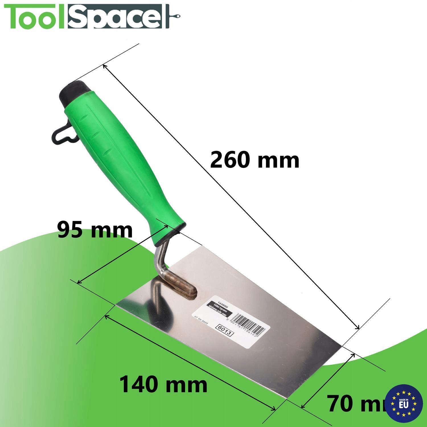 Ta trapezoidna zidarska gladilka je zasnovana za nanašanje in razmazovanje ometov, malt in lepil med gradnjo ali prenovo. Zaradi majhne velikosti se lahko uporablja tudi za štukaturna dela. Gladilka je izdelana iz jekla, ki ne rjavi ob izpostavljenosti vlagi in malti, zato jo je mogoče uporabljati večkrat . Priporočamo jo ljudem, ki se profesionalno ukvarjajo z gradbenimi in obnovitvenimi deli, zagotovo pa bodo z rezultati svojega dela z gladilko ToolSpace zadovoljni tudi tisti, ki dela opravljajo sami doma.
