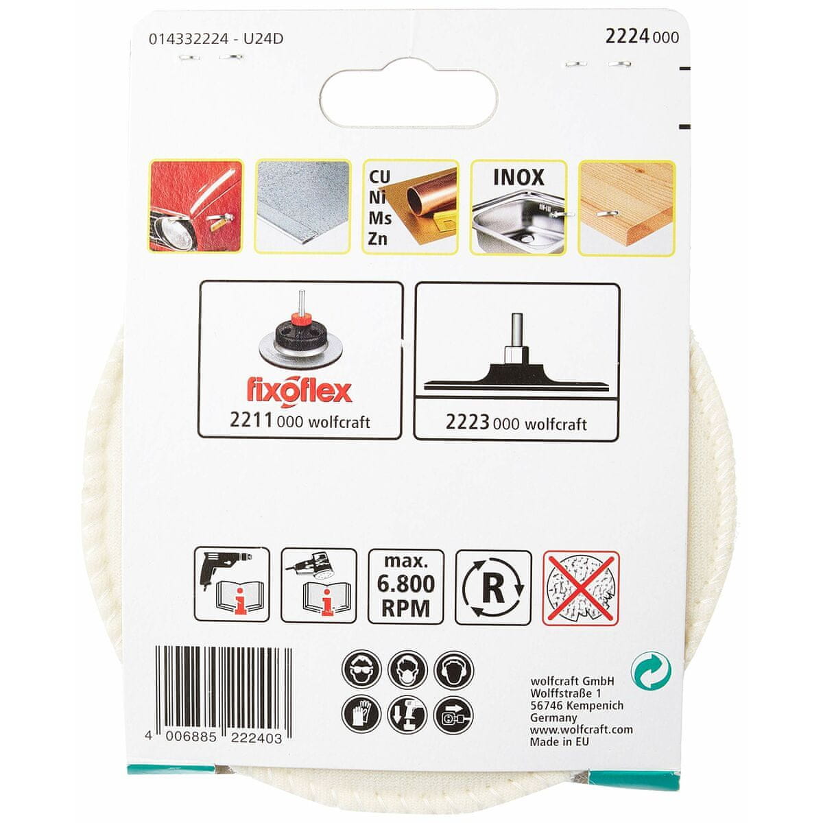 WolfCraft Polirna goba Wolfcraft Fixoflex 2224000 Zamenljive glave Disk za poliranje