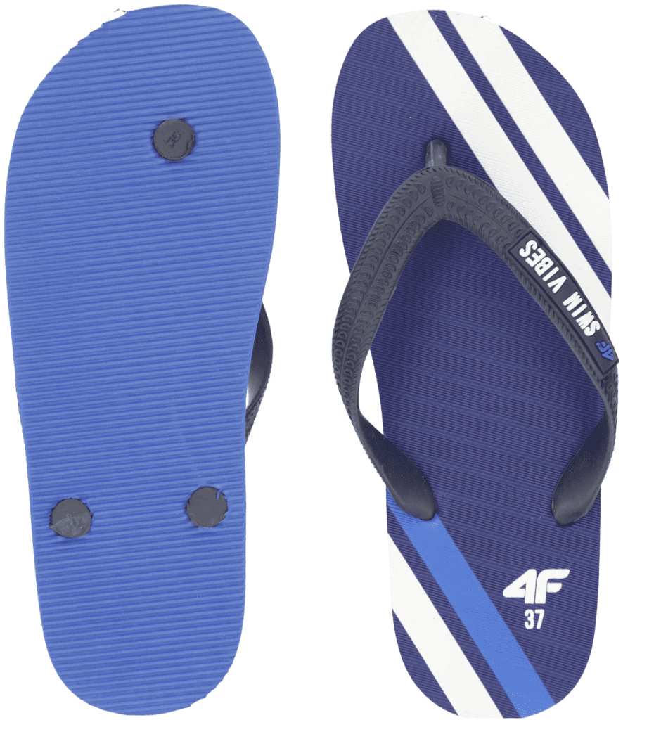 Mornarsko modre japonke znamke 4F, model J4L19-JKLM205–31S, so zasnovane kot idealna obutev za fante v toplih dneh. Te japonke so popolne tako za vsakodnevno nošenje kot tudi za spomladansko-poletne aktivnosti, saj združujejo udobje in funkcionalnost. Zahvaljujoč lahki konstrukciji in trdnim, gumijastim paskom, zagotavljajo ustrezno oporo stopalu in udobje pri vsakem koraku. Podplat iz pene EVA z različno gostoto omogoča odlično blaženje in lahkotnost, kar prispeva k izjemni udobnosti uporabe.