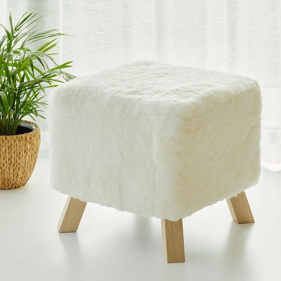 Ekru kvadratni tabure iz ovčje kože Celoten opis