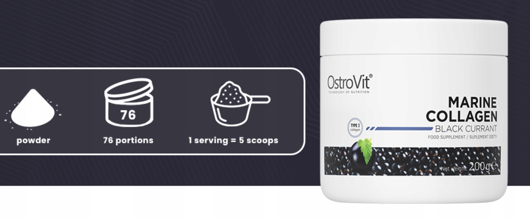 shumee OstroVit Marine Collagen 200 g kolagena v prahu s črnim ribezom