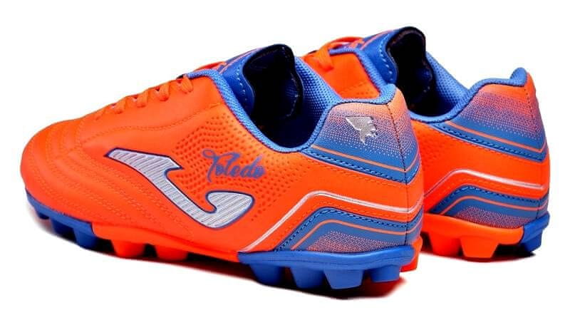 Joma JR TOLEDO 2308 otroški čevlji so model obutve, zasnovan posebej za nogometne navijače. Idealni so za tekme na igrišču. Zgornji del je izdelan iz visokokakovostnih sintetičnih materialov. Skrbno zasnovan podplat in ojačan prst zagotavljata udobje in stabilnost med hojo. Sistem vezanja omogoča popolno prileganje obutve anatomski obliki stopala.