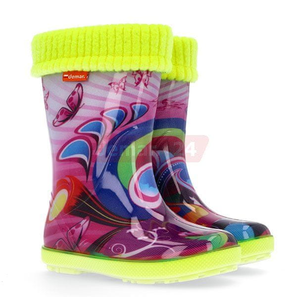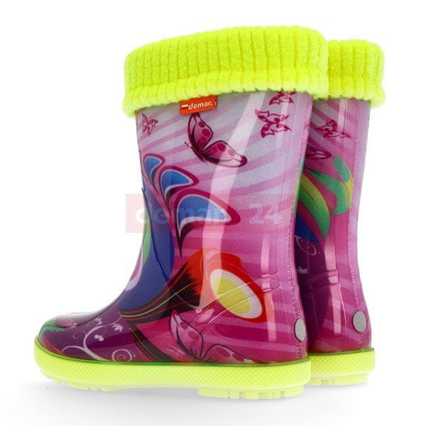 Otroški dežni škornji iz PVC-ja. Ti škornji ne vsebujejo težkih kovin, kot so kadmij, nikelj in svinec. Imajo odsevne elemente in praktično, odstranljivo, pralno izolirano podlogo na do 40°C. Popoln za sprehod v šolo ali igro na dvorišču.
