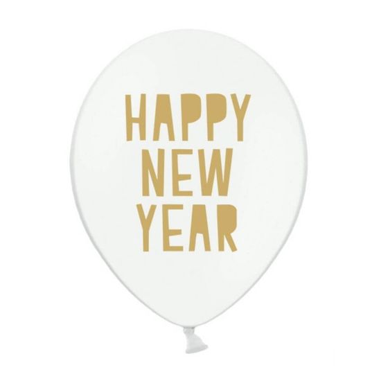 Baloni Happy New Year, 30 cm, bele barve.