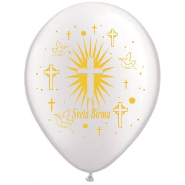 Baloni so okrogle oblike, poslikan z zlatim potiskom s simboli krščanstva. Za lažje nošenje in igranje je priporočeno, da se balon nosi pritrjen na trak ali palčke. Lahko napolnite z zrakom ali s helijem. Helij poskrbi, da bodo vaši baloni lebdeli še dolgo in krasili prostor vsaj še tri tedna po polnitvi. Primerni so za praznovanje svete birme, lahko pa jih tudi podarite – samostojno ali kot dodatek k darilu. Z vključitvijo balonov v dekoracijo zabave ne boste nikoli zgrešili. Torej izberite ta nepogrešljiv dekoracijski dodatek, ki je ustvarjen za vsako veselo praznovanje in zabavo. Baloni iz navadnega prostora pričarajo poseben, svečan ambient. Pri tem svetujemo, da jih je veliko, le tako bo učinek maksimalen. Združite več balonov skupaj z različnimi dekorativnimi trakovi in naredite prekrasen šopek, ki bo krasil prostor ali mizo. Z idejami in svetovanjem, kako okrasiti vaš prostor, vam bomo z veseljem pomagali. Kombinirajte še z drugimi Krst, obhajilo, birma party izdelki in naredite vtis na vaše goste. V paketu je 10 balonov, kar je ravno prav za začetek vaše dekoracije. Za popolen učinek, pa svetujemo okasitev s več seti, odvisno od velikosti prostora, kjer se bo odvijala vaša zabava ali dogodek. Balon je lahko tudi prijeten spominek na prijetno zabavo, katerega gost odnese s seboj. Balone ob končani zabavi lahko tudi zavrzite in jih reciklirajte kot plastiko.