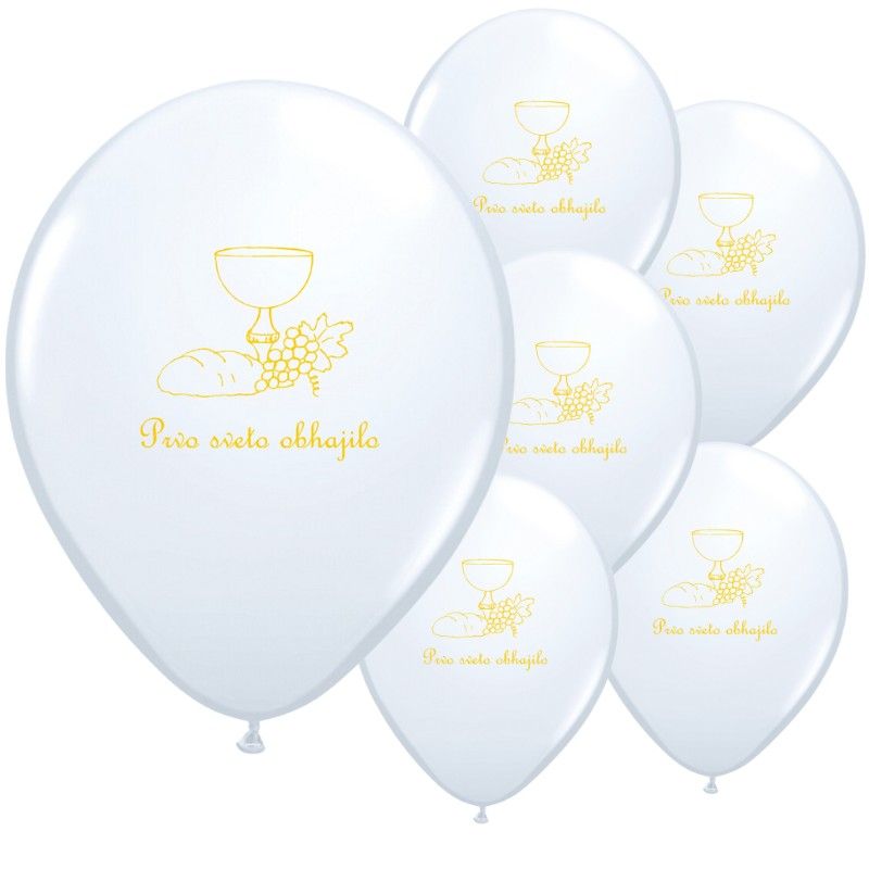 Baloni za Sveto Obhajilo, 28 cm, bele barve z zlatim potiskom