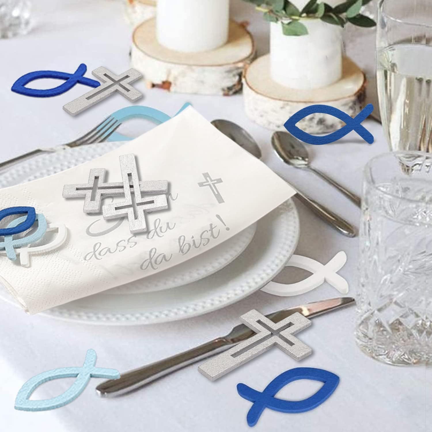 Nikcorp Komplet dekoracij za obhajilo, birmo ali krst | 60 lesenih ribic, 14 balonov, 40 servietov | Dekoracija za mizo in prostor