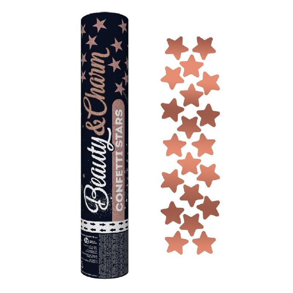 Konfeti v obliki zvezde v tubi iz ekskluzivne kolekcije Beauty&Charm so resnično edinstvena dekoracija! Zasukajte tubo za izstrelitev in pustite, da vas očara rožnato-zlati dež vrtinčastih zvezd. Manj ni vedno več, in tube za izstrelitev so najboljši dokaz. Na svoji zabavi izstrelite tri ali celo štiri tube s konfeti hkrati in se prepričajte sami.