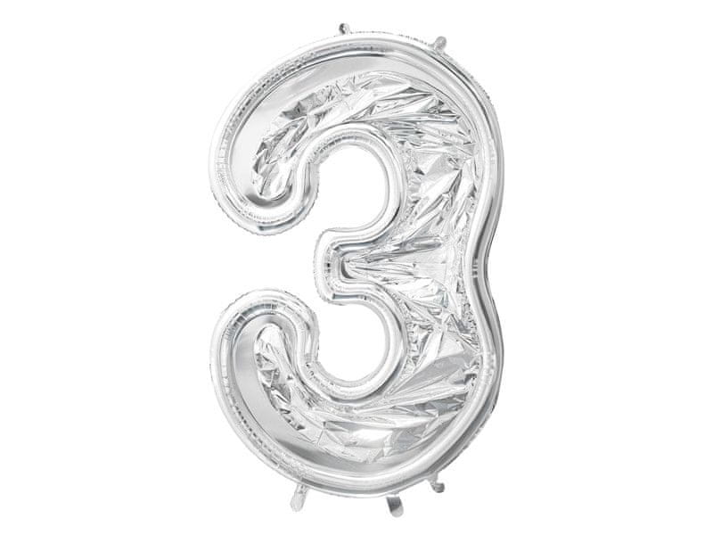 Oblika številke „3“ za lateks balone, 126 cm, sijoča srebrna Celoten opis