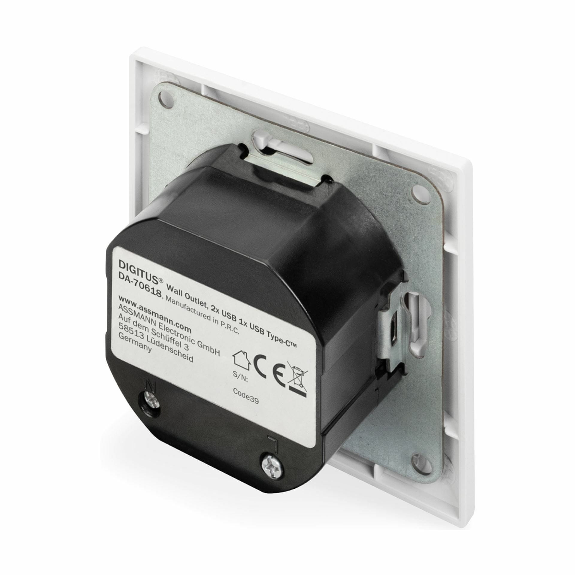 Digitus podometna vtičnica 2xUSB A+1xUSB TipC+3100 mA DA-70618