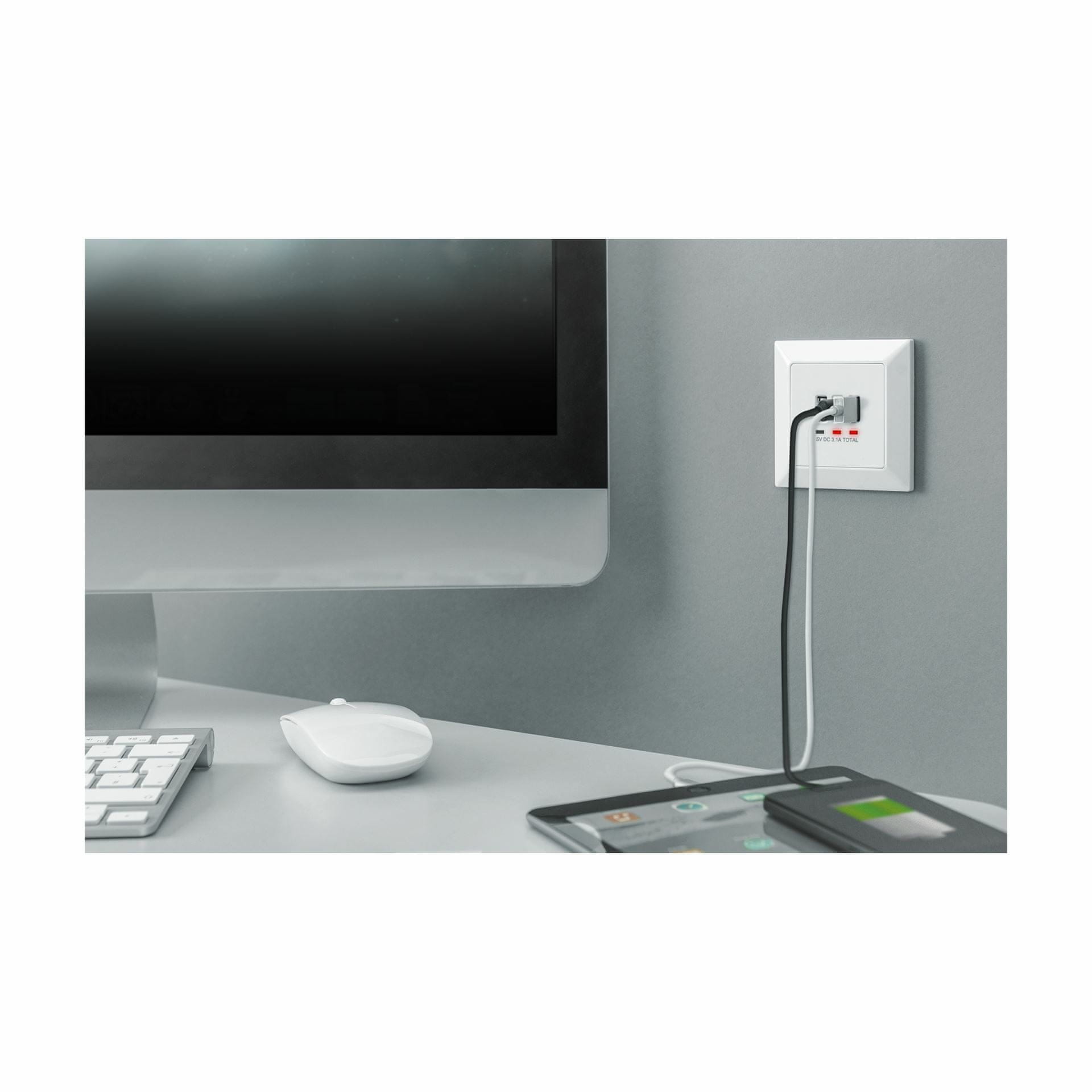 Polnite pametne telefone in tablične računalnike neposredno iz stenske vtičnice! S polnilno škatlo DIGITUS USB lahko hkrati polnite celo 3 pametne telefone ali tablične računalnike. Polnite eno napravo USB-C™ z močjo do 14 W (5 V / 2,8 A) in dve napravi USB A z močjo do 14 W (5 V / 2,8 A). Na primer, hkrati lahko polnite pametni telefon in tablični računalnik s skupno razpoložljivo polnilno zmogljivostjo 15,5 W. Zaščitite sebe in svojo družino z vgrajeno elektronsko zaščito pred kratkim stikom in preobremenitvijo v vratih USB. Nadgradite svoje obstoječe električne napeljave in uživajte v polnjenju naprav USB kadar koli neposredno iz stenske vtičnice.
