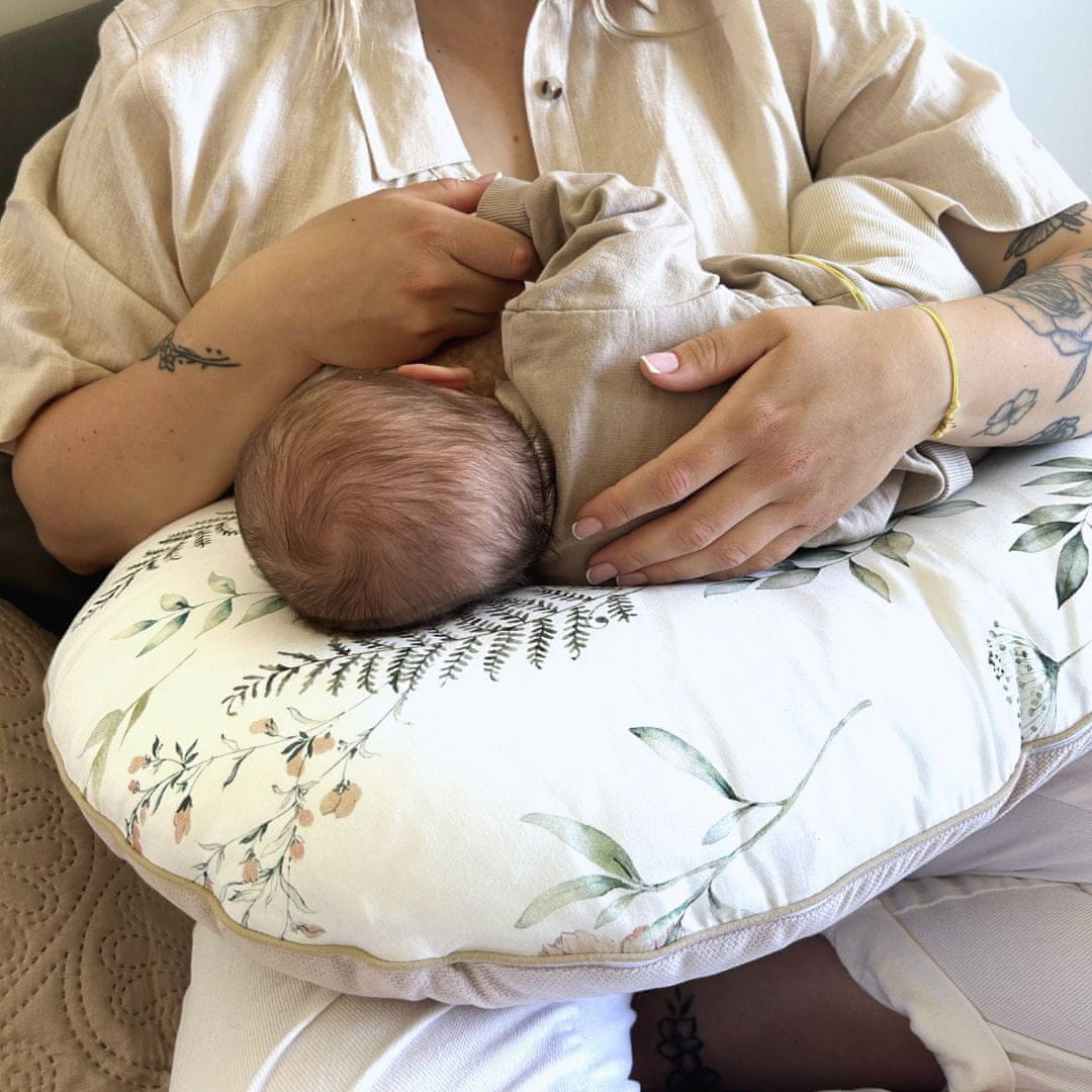 Zasnovana je za udobno oporo okoli pasu med hranjenjem dojenčka. Ergonomska oblika dojilne blazine zagotavlja maksimalno udobje za vašega dojenčka, hkrati pa razbremeni pritisk na hrbet in zmanjša obremenitev vratu in zatilja. Vašemu malčku daje občutek bližine in varnosti. Nepogrešljiva je med hranjenjem, igranjem ali sedenjem. Uporabljate jo lahko tudi pred in po rojstvu, kot naslonjalo za hrbet, oporo za kolena in med spanjem.
