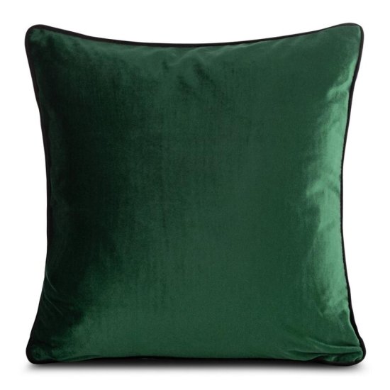 Žametna prevleka za vzglavnik, obrobljena z okrasnimi pasovi širina: 60 cm, dolžina: 60 cm, barva: temno zelena, teža: 210 GSM, sestava: 100% poliester