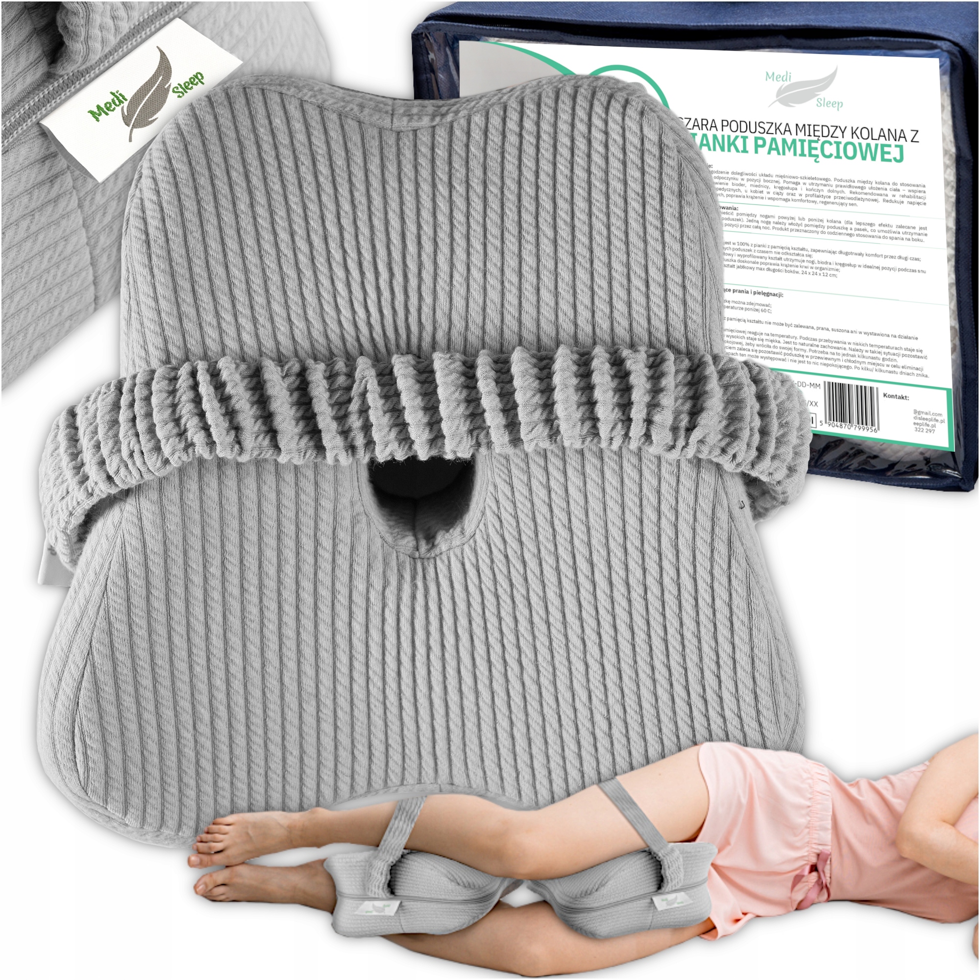 shumee ORTOPEDSKA SPALNA VZGLAVINA MEDI SLEE ZA KOLENA, SIVA