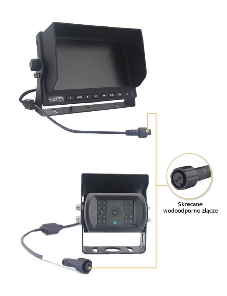 Digitalni barvni monitor z ojačano strukturo (Serija Heavy Duty) in zaslon z diagonalo slike 7" deluje tudi v zelo težkih pogojih. Senčnik zagotavlja dober vid v neugodnih svetlobnih pogojih v kabini. Monitor je prilagojen za upravljanje 1 digitalne brezžične kamere. Slika lahko prikazuje oznake, ki pomagajo določiti razdaljo do ovire.