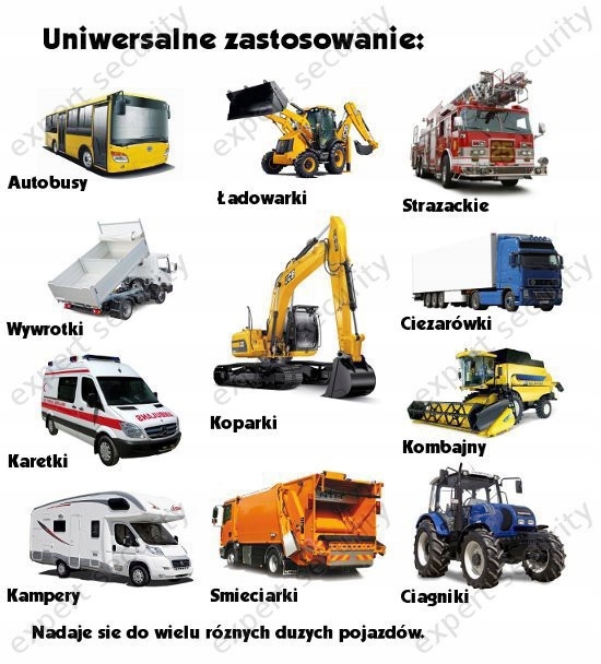 kmetijsko mehanizacijo, kombajne, bagre, buldožerje, snežne pluge, smetarska vozila, avtobuse, tovornjake in velike tovornjake, avtodome, reševalna vozila itd.