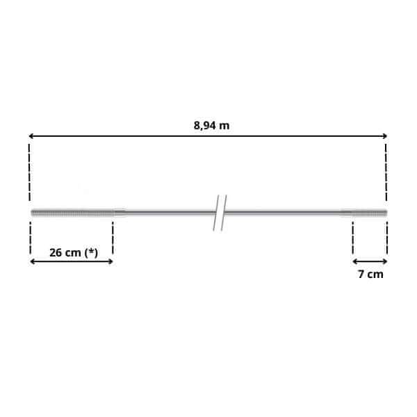Dvigala uporabljajo različne dolžine vrvi: 8,72 m, 8,65 m, 8,94 m itd. Pogosto ne veste, kako dolga je vaša vrv. Zato smo na drugi strani uporabili največjo možno dolžino navoja 26 cm (1). Verjamemo, da lahko lastniki delavnic sami skrajšajo navojni element (nekdo, ki popravlja avtomobile, mora znati uporabljati kotni brusilnik :). To močno olajša namestitev naše vrvi, monter pa lahko med namestitvijo določi, koliko želi skrajšati vrv, hkrati pa ohrani enostavnost namestitve (vrv se enostavno oprime z maticami).
