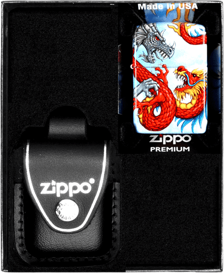 Komplet vžigalnika in etuija ZIPPO® iz pravega usnja s črno zanko za pas v darilni škatli. Ta originalni vetrovni bencinski vžigalnik ZIPPO® ima sistem WINDPROOF za zanesljivost v močnem vetru. Vžig s kresilnim kamnom zagotavlja zanesljivo iskro v vseh pogojih. Zamenljivi kresilni kamni, stenj in vata zagotavljajo dolgoletno uporabo. Medeninasta konstrukcija zagotavlja odpornost proti koroziji in potrjuje pristnost izdelka. Zasnova je takšna, kot je prikazana na sliki in v naslovu. Pakirano v elegantni darilni škatli Zippo®.