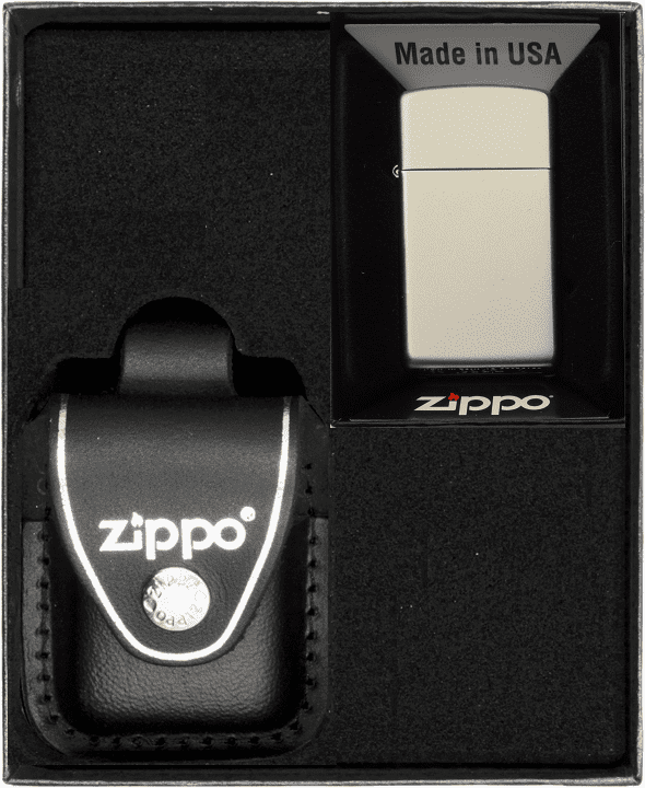 Komplet vžigalnika in etuija ZIPPO® iz pravega usnja s črno zanko za pas v darilni škatli. Ta originalni vetrovni bencinski vžigalnik ZIPPO® ima sistem WINDPROOF za zanesljivost v močnem vetru. Vžig s kresilnim kamnom zagotavlja zanesljivo iskro v vseh pogojih. Zamenljivi kresilni kamni, stenj in vata zagotavljajo dolgoletno uporabo. Medeninasta konstrukcija zagotavlja odpornost proti koroziji in potrjuje pristnost izdelka. Zasnova je takšna, kot je prikazana na sliki in v naslovu. Pakirano v elegantni darilni škatli Zippo®.