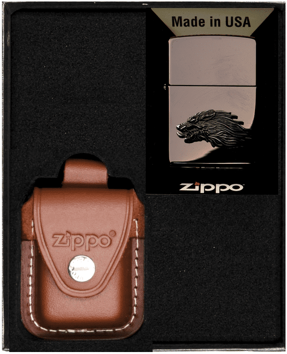 ZIPPO® komplet: Originalni vžigalnik ZIPPO in rjav usnjen etui ZIPPO z zanko za pas v darilni škatli. Originalni bencinski vžigalnik ZIPPO® Windproof. Sistem WINDPROOF zagotavlja zanesljivost v močnem vetru. Vžig s kresilnim kamnom zagotavlja zanesljivo iskro v vseh pogojih. Zamenljivi kresilni kamni, stenj in vata omogočajo dolgoletno uporabo. Medeninasta konstrukcija zagotavlja odpornost proti koroziji in potrjuje izvirnost izdelka. Oblika kot na fotografiji in v naslovu. Pakirano v elegantni darilni škatli Zippo®.