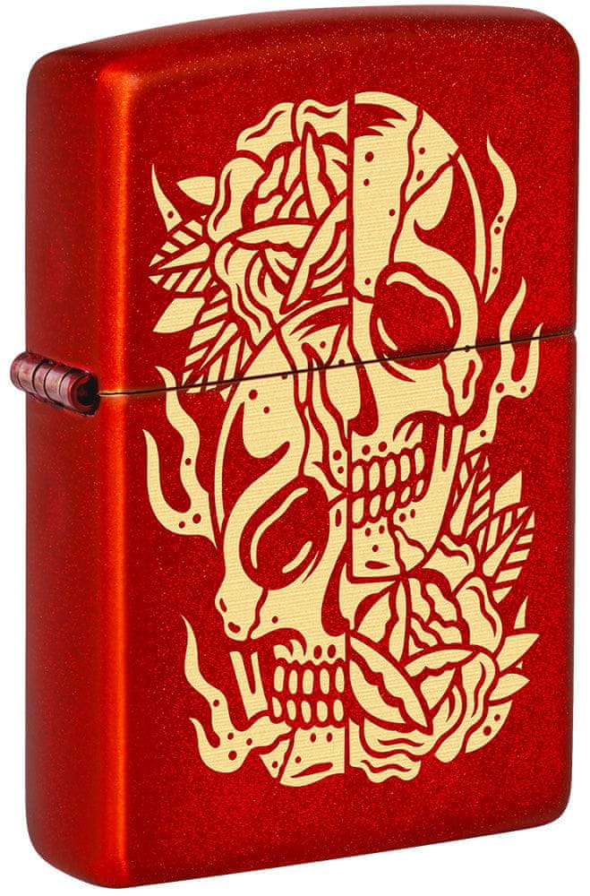 Material: Metallic Red, Motiv: Razpolovljena lobanja in rože v stilu tattoo, Ekskluzivni dizajn za Slovenijo, narejenih le 30 vžigalnikov s tem motivom!