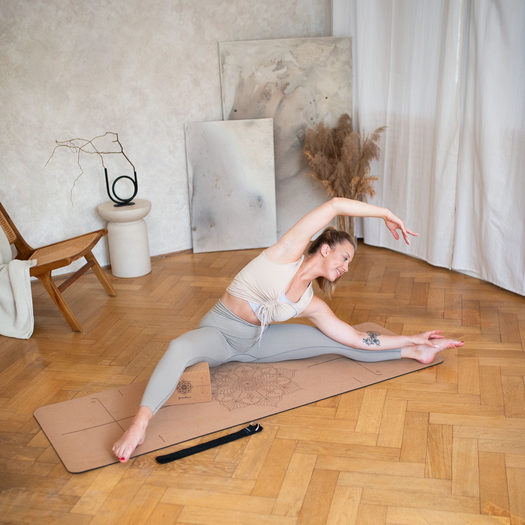 HMS CORK JOGA SET: TPE MAT YM11 + KJ02 KOCKA + SJ02 TRAK. Ta komplet za jogo podjetja HMS Fitness je namenjen tistim, ki iščejo naravne, okolju prijazne materiale in podporo med vadbo joge. Komplet, sestavljen iz podloge iz kombinacije plute in TPE, plutaste kocke in univerzalnega traku, zagotavlja udobje in stabilnost, ki sta bistvenega pomena za praktikante joge vseh stopenj znanja. Podloga za jogo YM11 – Naravna in udobna Podloga YM11 proizvajalca HMS je izdelana iz kombinacije TPE in plute, kar zagotavlja ustrezno blaženje udarcev, mehkobo in naravne antibakterijske lastnosti. Protizdrsna plutasta površina zagotavlja varno vadbo tudi med intenzivnimi jogami, prožnost materiala TPE pa omogoča, da se podloga po vsaki uporabi vrne v prvotno obliko. Zaradi svojih dimenzij (182 × 61 × 0,6 cm) je idealna izbira tako za začetnike kot napredne jogije. Pluta, naravni material, je koži prijazna, hipoalergena in okolju prijazna, zaradi česar je podloga popolna za vse pogoje, tako v zaprtih prostorih kot na prostem. KJ02 Yoga blok 'Stabilnost in podpora Plutasti joga blok KJ02 je izjemna izbira za tiste, ki cenijo stabilnost in vzdržljivost med vadbo. Tanjši od standardnih blokov EVA ponuja dodatno podporo med zahtevnimi položaji, omogoča globlje raztezanje in boljšo stabilizacijo telesa. Za material plute je značilna visoka gostota in odpornost na deformacije, kar zagotavlja vzdržljivost kocke. Njegov naraven videz in vzorec mandale prispevata k estetski privlačnosti in poudarjata ekološki značaj kompleta. Je popolna podpora za vsakega jogija, ne glede na stopnjo napredovanja. SJ02 Yoga Strap 'Dosezite več. Joga trak SJ02, izdelan iz mešanice bombaža in poliestra, je nepogrešljiv pripomoček, ki pomaga pri poglabljanju položajev in izboljšanju tehnike. Zahvaljujoč nastavljivi zaponki D-obroč lahko trak preprosto prilagodite vašim individualnim potrebam, kar vam omogoča varno izvajanje tudi najzahtevnejših položajev. Trak je izjemno vzdržljiv, a lahek in enostaven za uporabo, zaradi česar je popoln pripomoček za vsako vadbo. Popoln komplet za naravno vadbo joge. HMS Cork Yoga Set je odlična izbira za tiste, ki iščejo naravno in okolju prijazno izkušnjo joge. Podloga iz plute in TPE, plutasta kocka in trak tvorijo popoln komplet, ki podpira razvoj tako začetnikov kot naprednih jogijev. Zahvaljujoč visokokakovostnim materialom ta komplet zagotavlja stabilnost, udobje in varnost v vsaki fazi vadbe. Komplet HMS je naložba v vaše zdravje in razvoj, naj vas naravni materiali podpirajo na vaši poti do harmonije telesa in duha. Specifikacija: TPE + PLUTA joga podloga YM11 Dolžina: 182 cm Širina: 61 cm Debelina: 0,6 cm Material: TPE + pluta Barva: rjava Trakovi za prenašanje: da Prevleka vključena: da Teža: 900 g PLUTA KJ02 joga kocka Velikost: 22×10×15 cm Barva: rjava Material: naravna pluta Teža: 1000 g SJ02 trak za jogo Dolžina: 300 cm Širina: 3,8 cm Debelina: 0,2 cm Zapenjanje: 2× D-ring Barva: črna Material: bombaž + poliester Teža: 105 g Opombe: 24-mesečna garancija za domačo uporabo 12-mesečna garancija za komercialno uporabo