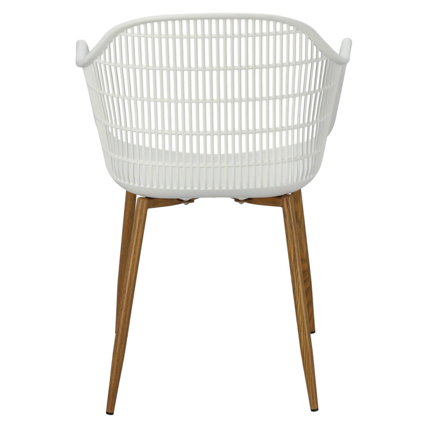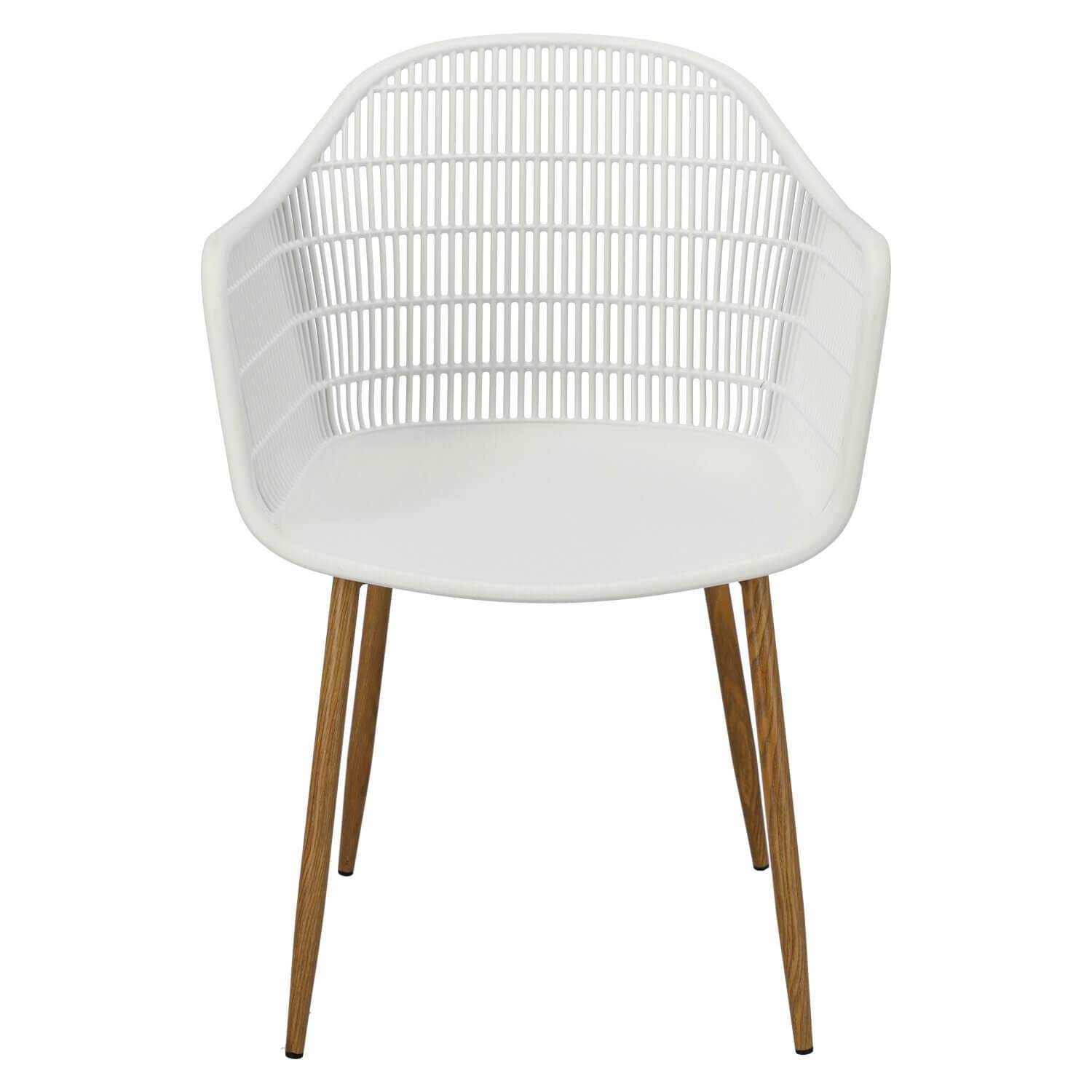 Beli stol Becker združuje eleganten dizajn in funkcionalnost ter je popoln za sodobno notranjost.    Izdelan iz trpežnega polipropilena, ima sedež mat površino, ki je preprosta za čiščenje in je odporna na madeže. Dodatnoodprti vzorci dodajo lahkotnostin zagotoviti ustrezno kroženje zraka, kar poveča udobje pri sedenju.Nasloni za roke in trdno kovinsko podnožjedodajte eleganco in toplino celotnemu dizajnu. Ta stol se popolnoma prilega jedilnici, kuhinji ali celo moderni dnevni sobi in ustvari stilski poudarek v vsaki notranjosti.