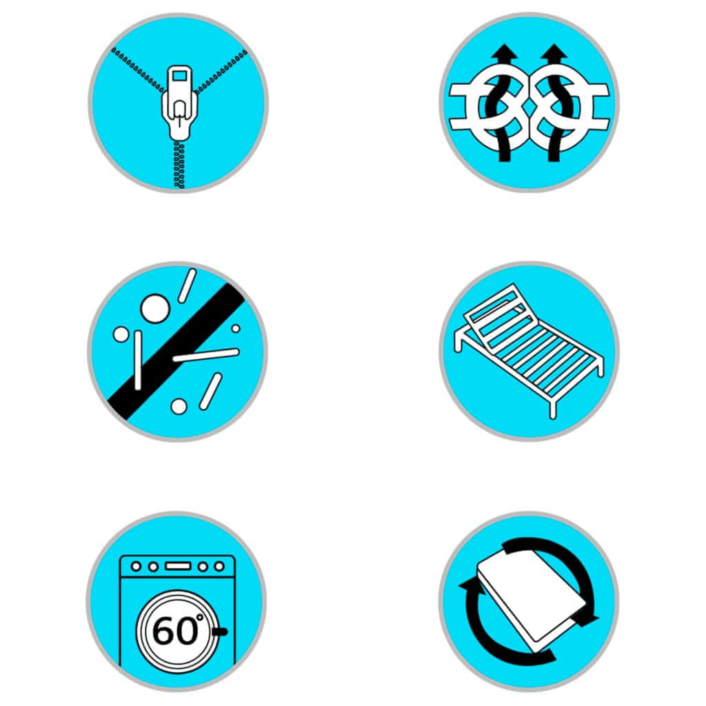 Ima trpežno in koži prijazno prevleko iz blaga, zato je ta nadvzmetnica mehka in zelo udobna. Pralna prevleka z zadrgo je tudi enostavna za čiščenje in vzdrževanje higiene.