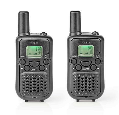 Nedis WLTK0500BK - Oddajnik | Doseg do 5 km | 8 kanalov | PTT / VOX | Do 2,5 ure | 2 kosa | Črna